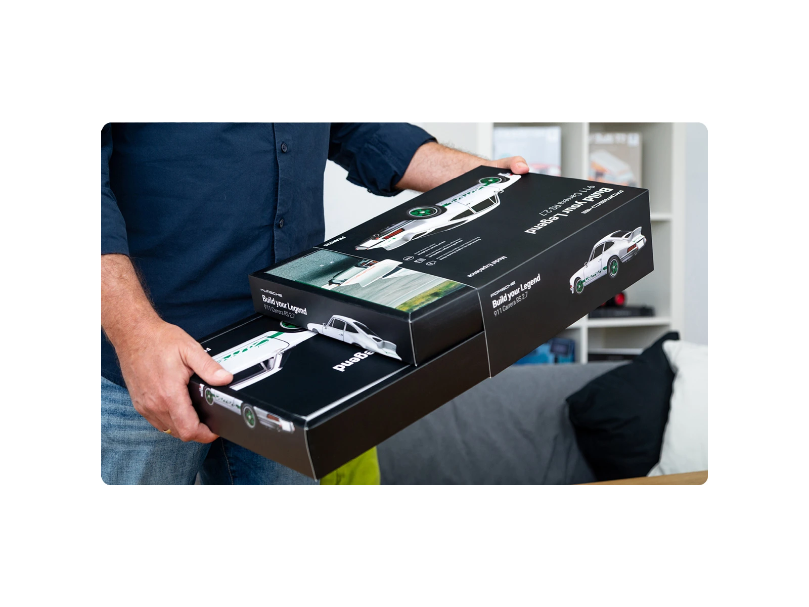 La confezione ecologica e dal design elaborato contiene tutti i componenti necessari per costruire il tuo mondo Porsche, senza bisogno di colla! All'interno troverai parti del modello, una base sonora, tutti i componenti elettronici necessari, elementi decorativi e un libretto di istruzioni: un vero e proprio "pacchetto all-inclusive" per tutti i veri appassionati Porsche! L'alta qualità artigianale dei singoli modelli e dei componenti elettronici garantisce una funzionalità duratura.