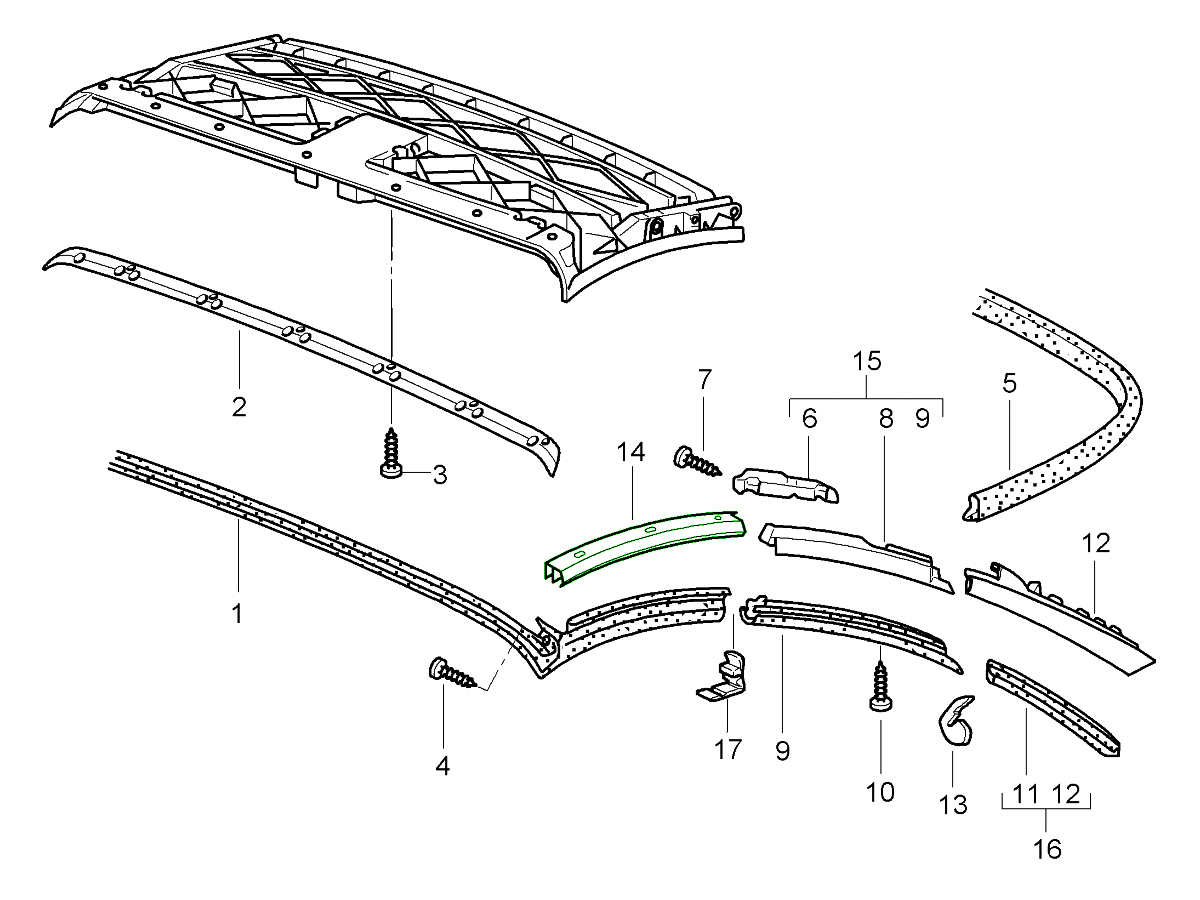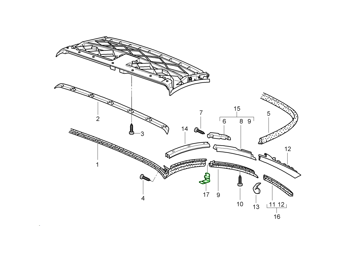 Striscia di fissaggio della capote. Porsche 996/997.2 Cabriolet