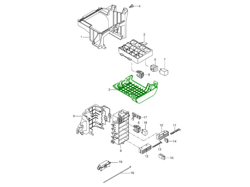 Le piastre relè ospitano diversi relè e connettori elettrici utilizzati per controllare le funzioni chiave del veicolo, come l'illuminazione, le ventole di raffreddamento, i sistemi di alimentazione e vari controlli elettronici. La copertura aiuta a mantenere un ambiente pulito e protetto attorno a questi circuiti elettrici, riducendo il rischio di corrosione, contaminazione o danni ai cavi.