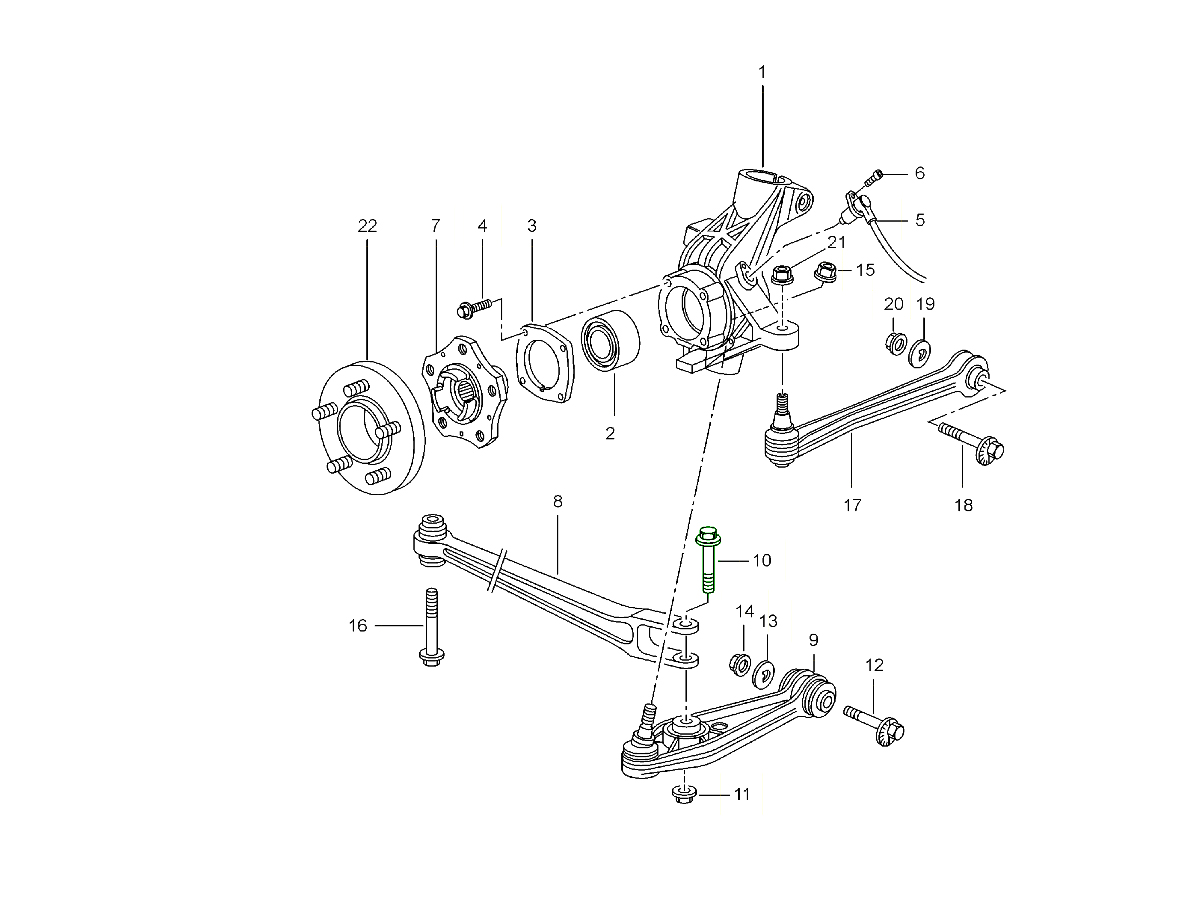 assale posteriore, portaruota, braccio trasversale e mozzo ruota per 986 Boxster 1997-04 501-00
