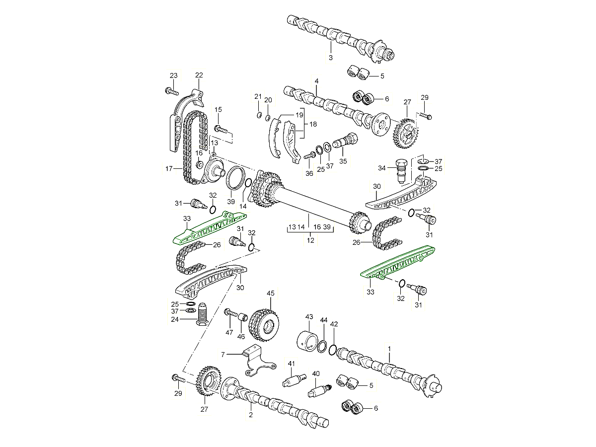 Albero a camme/meccanismo di guida - 9721, 9720, 9722 - 987C.1 Cayman 2.7L / 3.4L 2006-08 103-010