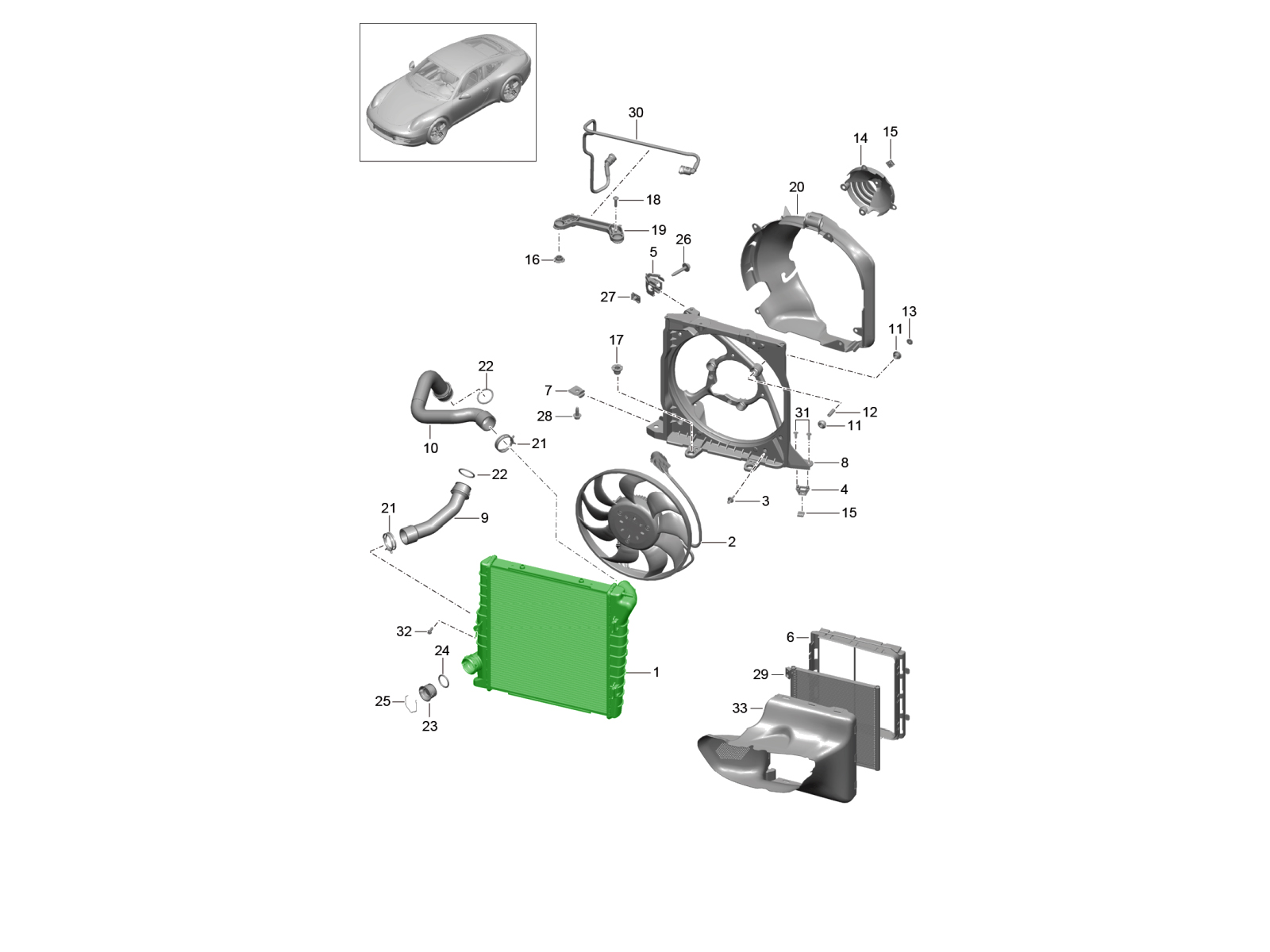 Da Design911 offriamo una gamma completa di radiatori per il liquido di raffreddamento originali e di alta qualità per i modelli Porsche, tra cui 911, Boxster, Cayman, Cayenne, Macan, Panamera e modelli con cambio automatico. Ogni radiatore è progettato con precisione per garantire un efficiente scambio termico, resistenza alla corrosione e una perfetta aderenza, garantendo prestazioni e affidabilità durature in ogni condizione di guida.