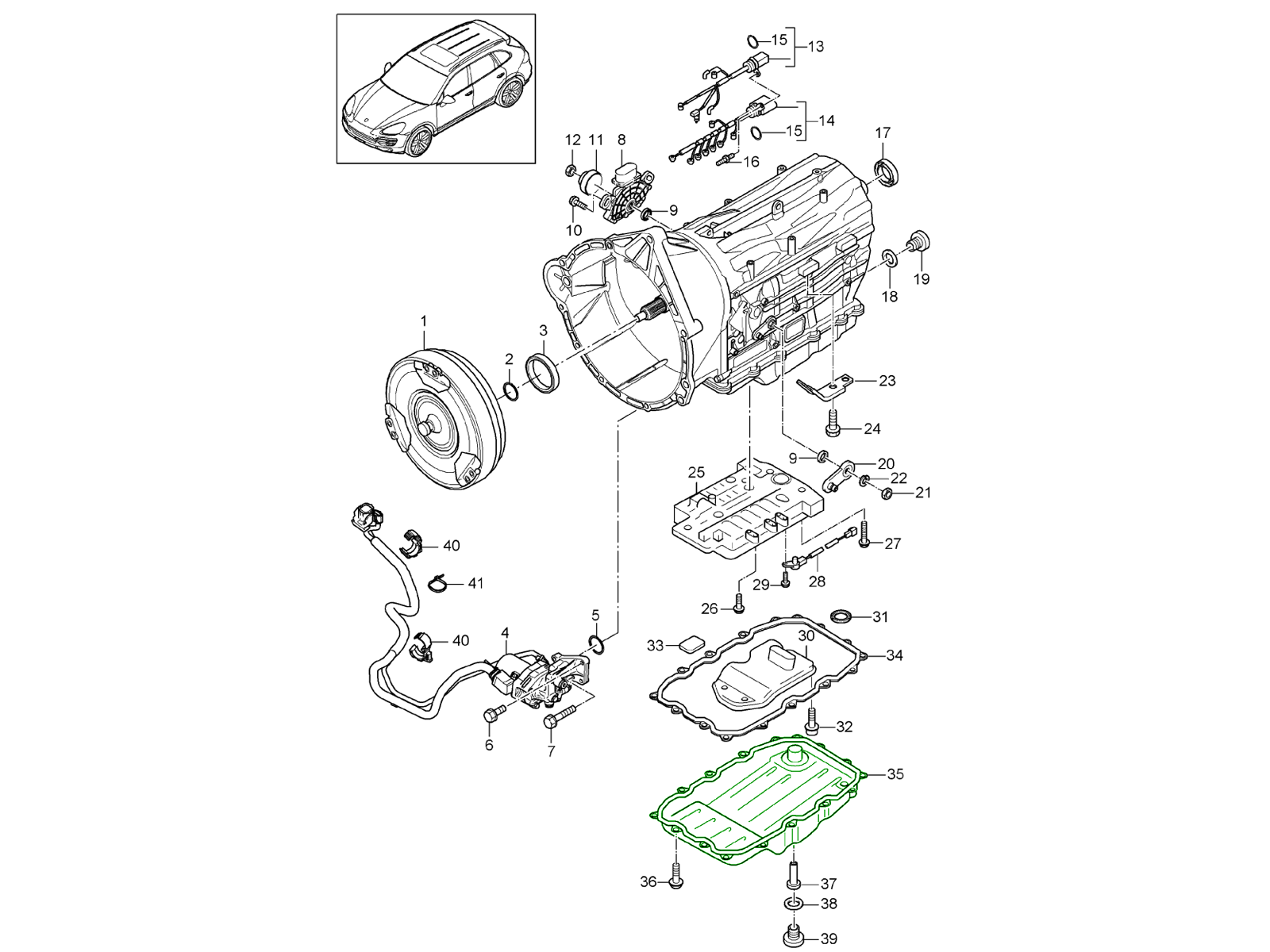 La coppa dell'olio del cambio svolge un ruolo fondamentale nel sistema di trasmissione della tua Porsche. Funge da serbatoio per il fluido del cambio, garantendo la corretta lubrificazione, il raffreddamento e il corretto funzionamento idraulico dei componenti interni. Una coppa di alta qualità mantiene l'olio del cambio ben filtrato e privo di contaminanti, essenziale per mantenere cambi di marcia fluidi e prestazioni generali della trasmissione.
