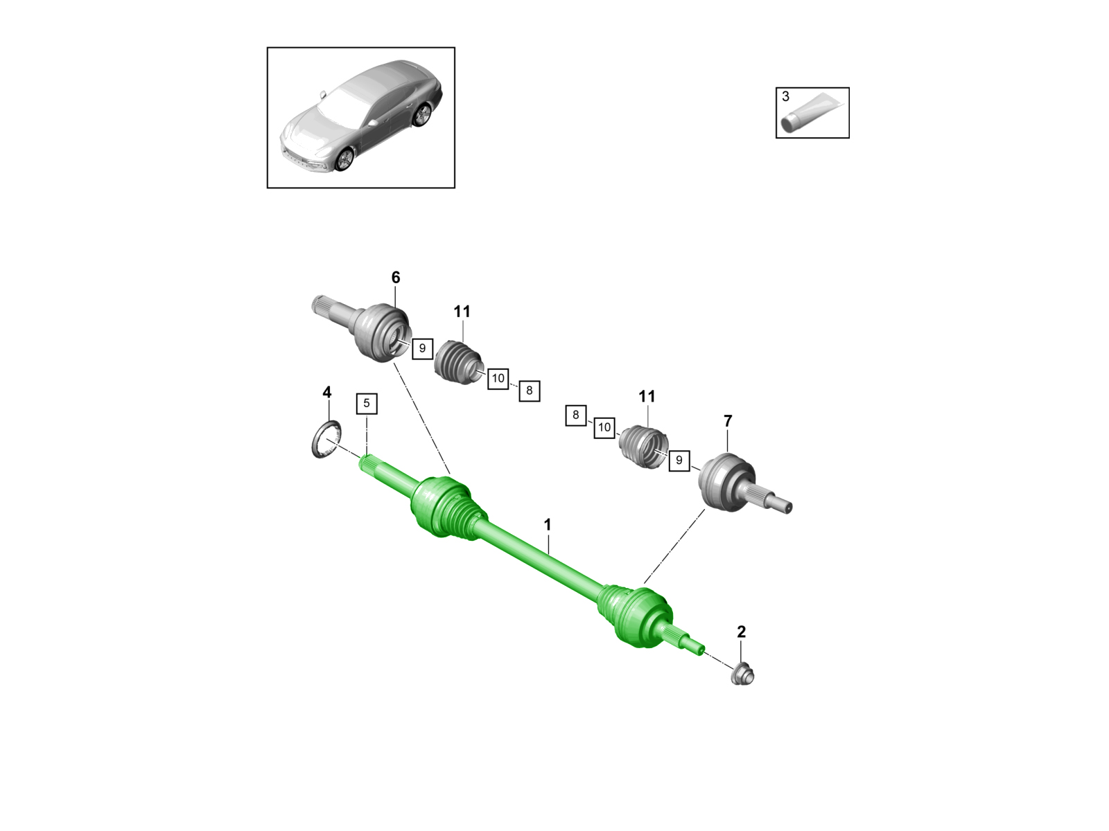 L'albero di trasmissione è un elemento fondamentale del sistema di propulsione della tua Porsche, che collega la trasmissione alle ruote motrici. Ruota ad alta velocità, trasmettendo la coppia e mantenendo un movimento equilibrato durante l'escursione delle sospensioni e il cambio di marcia.