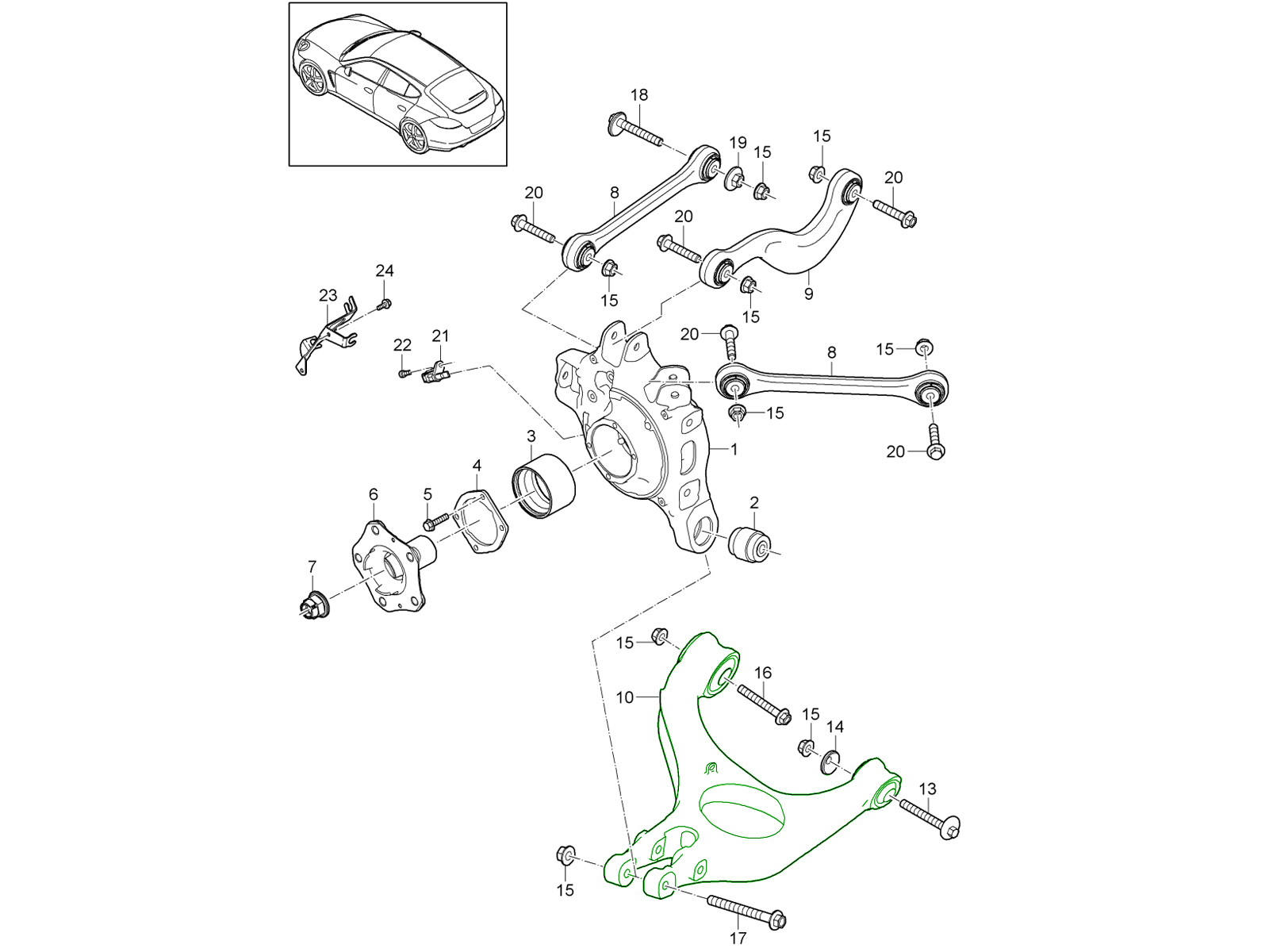 Asse posteriore / Portaruota / Braccio oscillante / Tirante / Mozzo ruota / Protezione antisassi Panamera 970 (G1) 2010-16 501-000