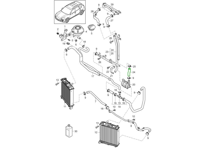 De koelvloeistofslang zonder temperatuursensor – retour is een origineel Porsche-onderdeel van het koelsysteem, ontworpen om koelvloeistof terug te voeren naar het motorkoelcircuit nadat deze door belangrijke onderdelen van het koelsysteem is gestroomd. Deze slang heeft geen aansluiting voor een temperatuursensor, waardoor het een specifieke retourleiding is voor bepaalde configuraties van het koelsysteem van de Porsche Cayenne 958.