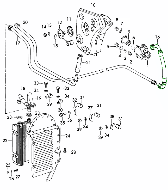 Oliefilterhuis naar motorolieleiding. Porsche 356/912