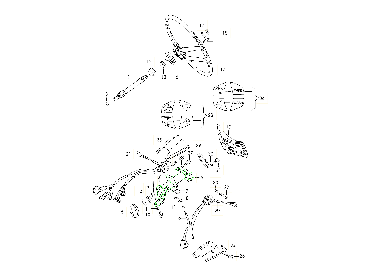 Breekbout voor stuurkolom, kort. Porsche 911 / 912 / 964 / 993