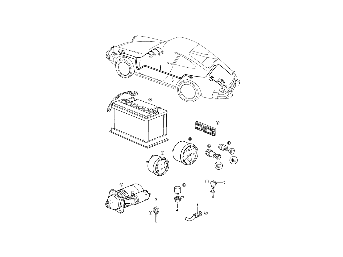 kabelbomen: bagageruimte VOOR, interieurverlichting, schuifdak 911 1978-83 902-14
