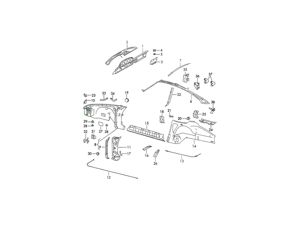 Verstevigingspaneel, boven, voor binnenste voorvleugel. Porsche 911 (901)