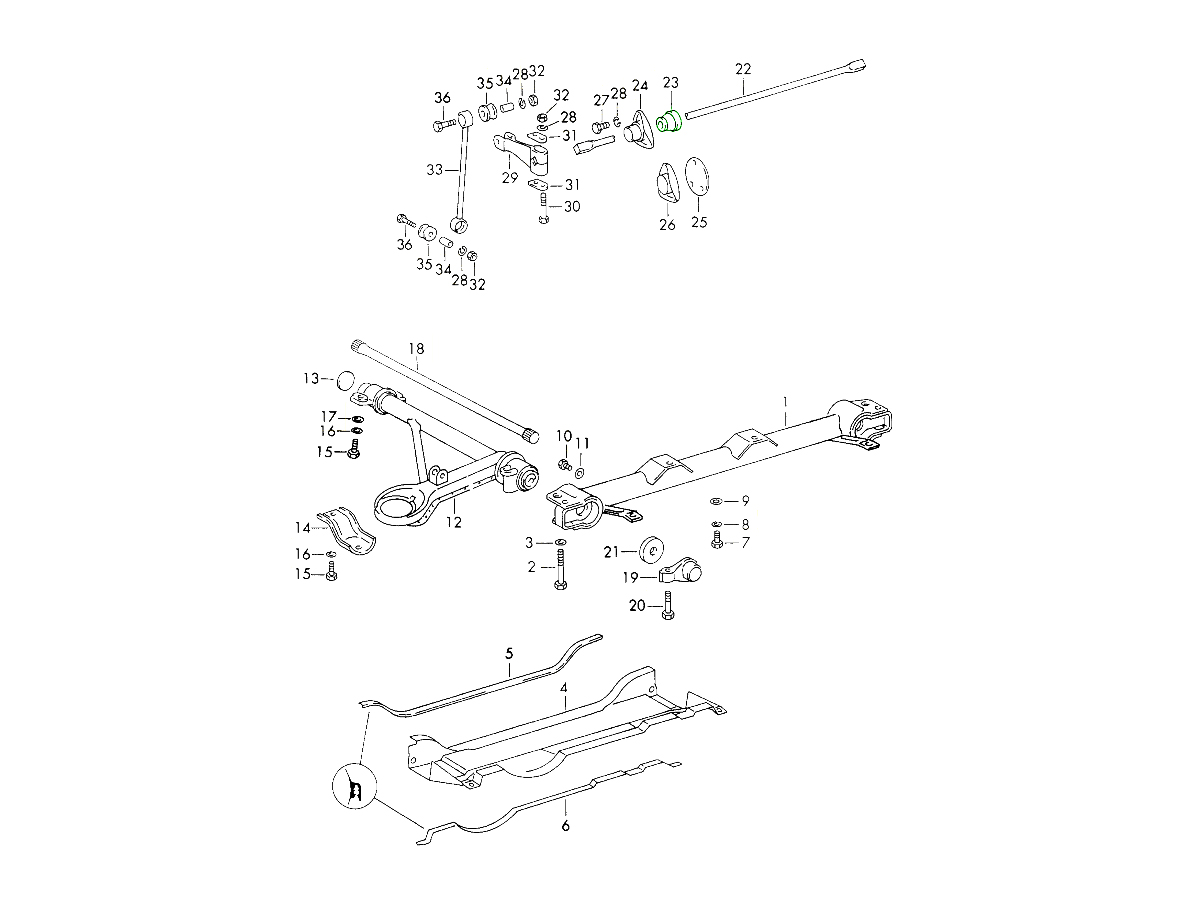 Lagerkap op achterassteun, Zwart. Porsche 911 65-73