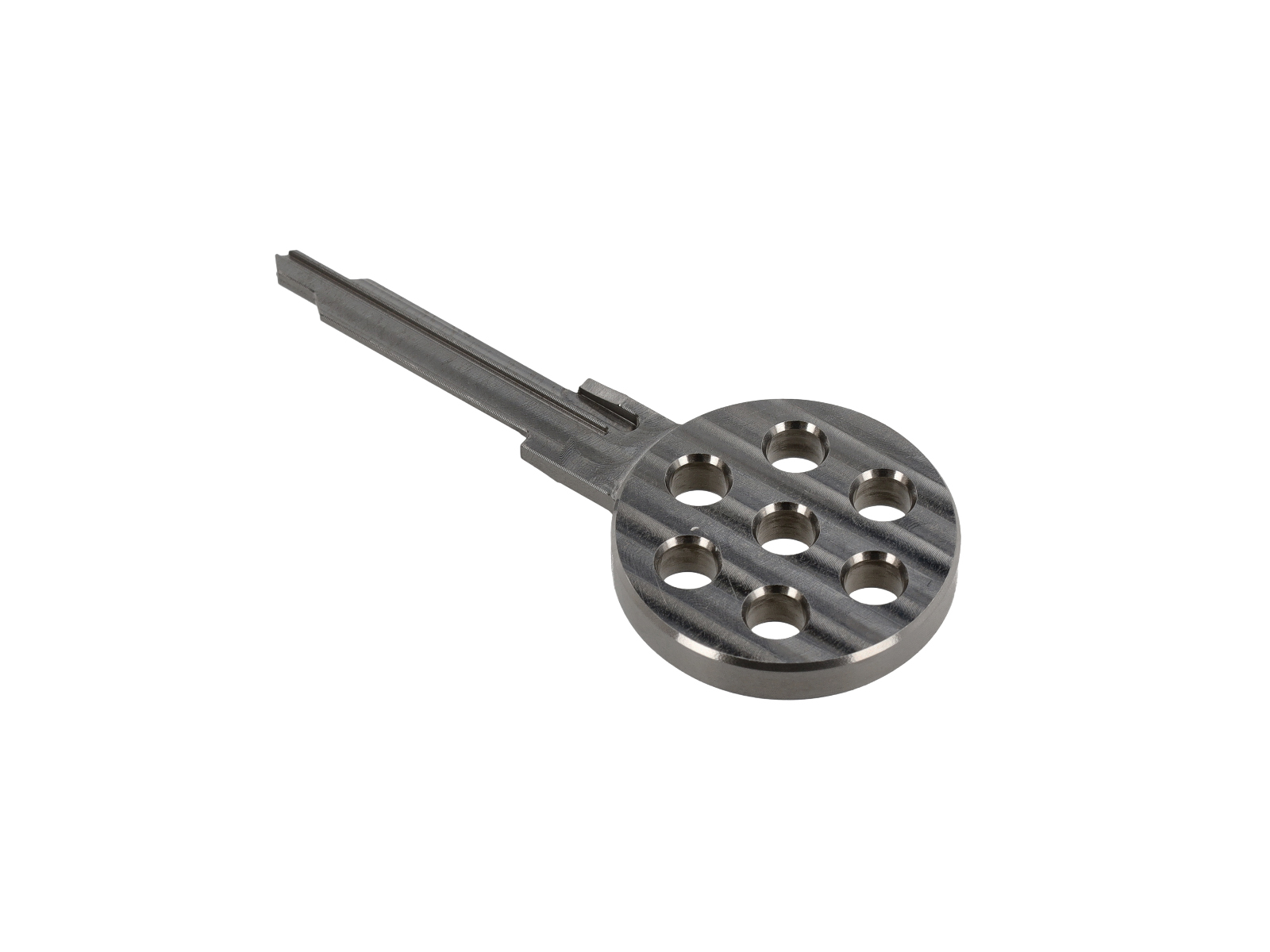 Opmerking 2: Sleutelkopieën van roestvrij staal en messing kunnen gewoon in uw plaatselijke bouwmarkt worden gemaakt. Titaniumsleutels vereisen het toepassen van meerdere langzame passages met lichte druk op een handmatige machine, totdat alle tanden volledig zijn gekopieerd. Na het schuren met het gebruikelijke draadwiel, is extra gebruik van een stuk schuurpapier (200-320) nodig om de scherpe randen die overblijven na het snijproces glad te strijken.