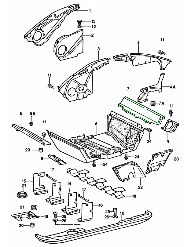 Afdekplaat motorkanaal, rechtsachter. Porsche 911 / 914 / 964