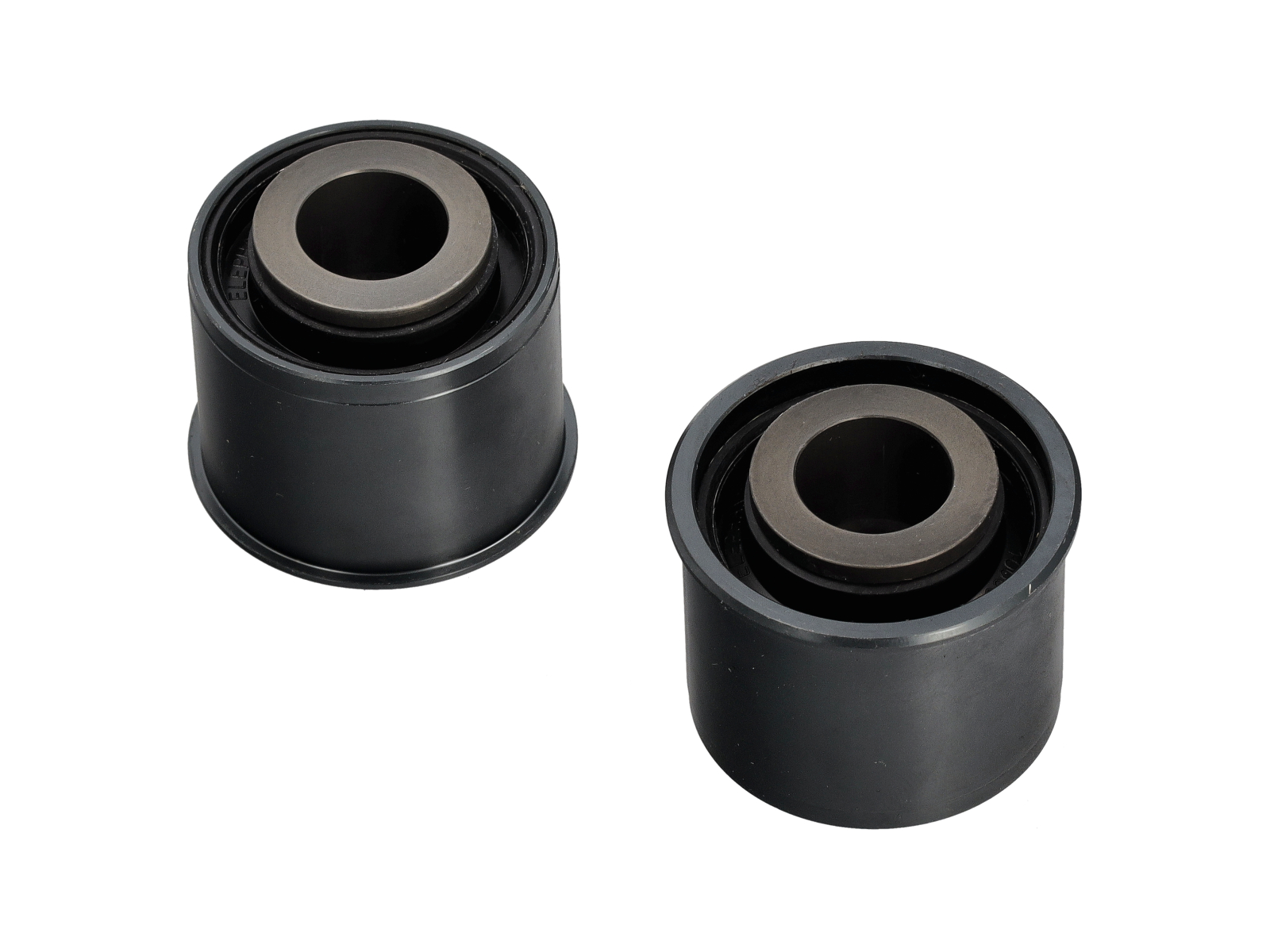 - Het fabrieksrubber buigt zijdelings door onder belasting in bochten, waardoor camber verloren gaat op het moment dat u dit het meest nodig heeft. Onze sferische lagers elimineren de doorbuiging, waardoor een stabiele en voorspelbare camber behouden blijft.
