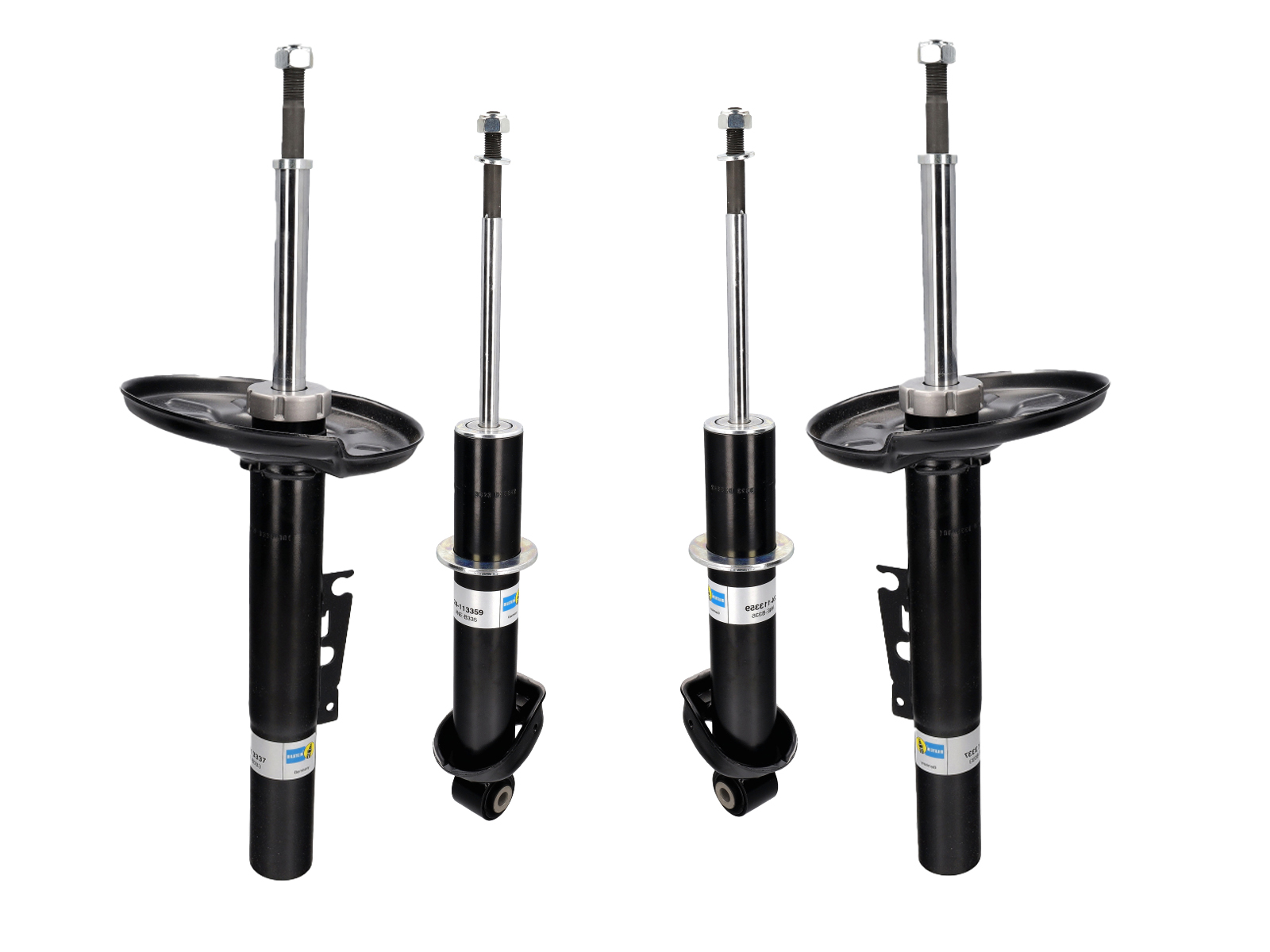 De B4 schokdempers zijn hoogwaardige vervangingsschokdempers die volgens de hoge Bilstein-normen zijn geconstrueerd en afgewerkt, vaak ver boven de normen waarmee de auto oorspronkelijk was uitgerust. Ze kunnen zelfs een prestatieverbetering opleveren als ze de standaard, niet-gasgevulde, met olie gevulde schokdempers vervangen. Ze verminderen cavitatie/olieschuimvorming aanzienlijk, waardoor de demping stabieler blijft bij sportief rijden. Verrassend genoeg zijn sommige auto's nog steeds uitgerust met standaard, met olie gevulde schokdempers.