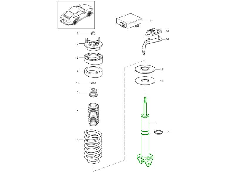Schokdemper, achter. Porsche 997.2 Turbo 2010-13
