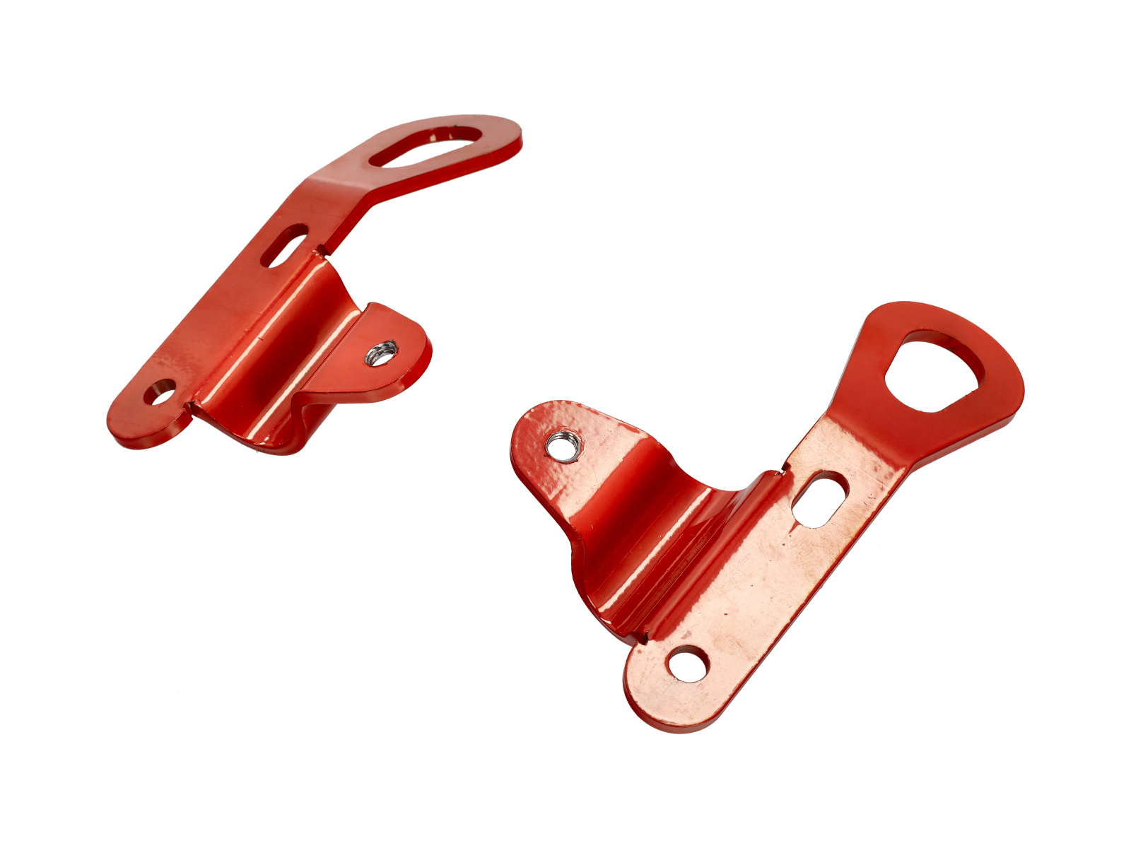 De bevestigingsbeugels van Rennline zijn gemaakt van roestvrij staal of zacht staal met rode poedercoating. Deze beugels zijn verkrijgbaar in vier varianten: recht , 90° , 66° en 45° , zodat u ze op veel verschillende locaties kunt installeren, afhankelijk van uw specifieke behoeften. Het montagegat heeft een diameter van 16,5 mm. Dit is dezelfde afmeting als de meeste schokdemperbevestigingsbouten en diverse andere ophangingscomponenten.