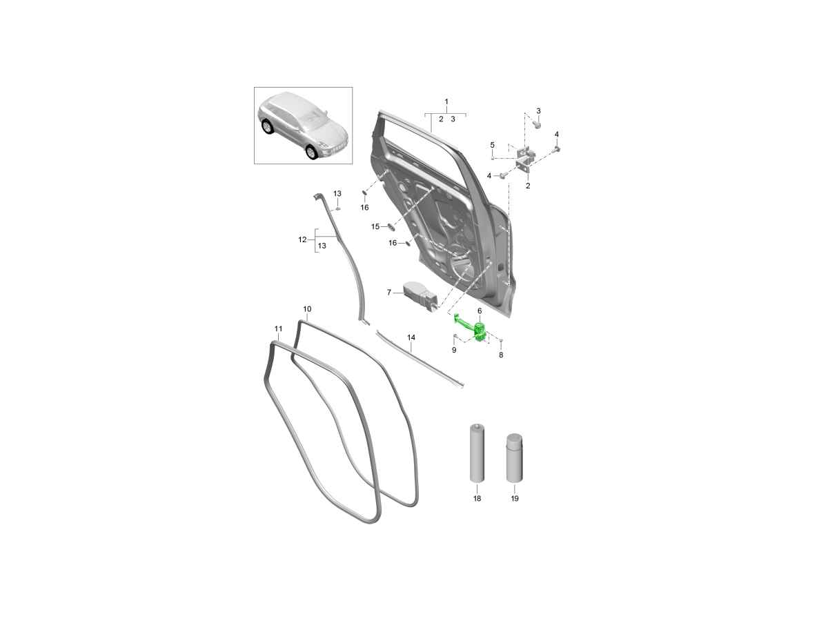 De deurstopper van de achterdeur van de Porsche 95B Macan is een essentieel onderdeel van het deurscharnier- en openingssysteem. Dit onderdeel, ook wel deursteun of deurrem genoemd, regelt hoe ver de deur opent en houdt deze stevig op zijn plaats bij specifieke openingshoeken.