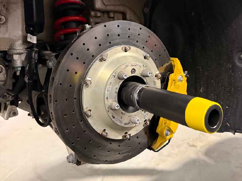 Als een wiel tijdens het monteren of demonteren verschuift, kan dit gemakkelijk de gelakte remklauwen of de kostbare koolstofkeramische remschijven (PCCB) beschadigen. De geleidingspen zorgt ervoor dat het wiel stevig op zijn plaats blijft.