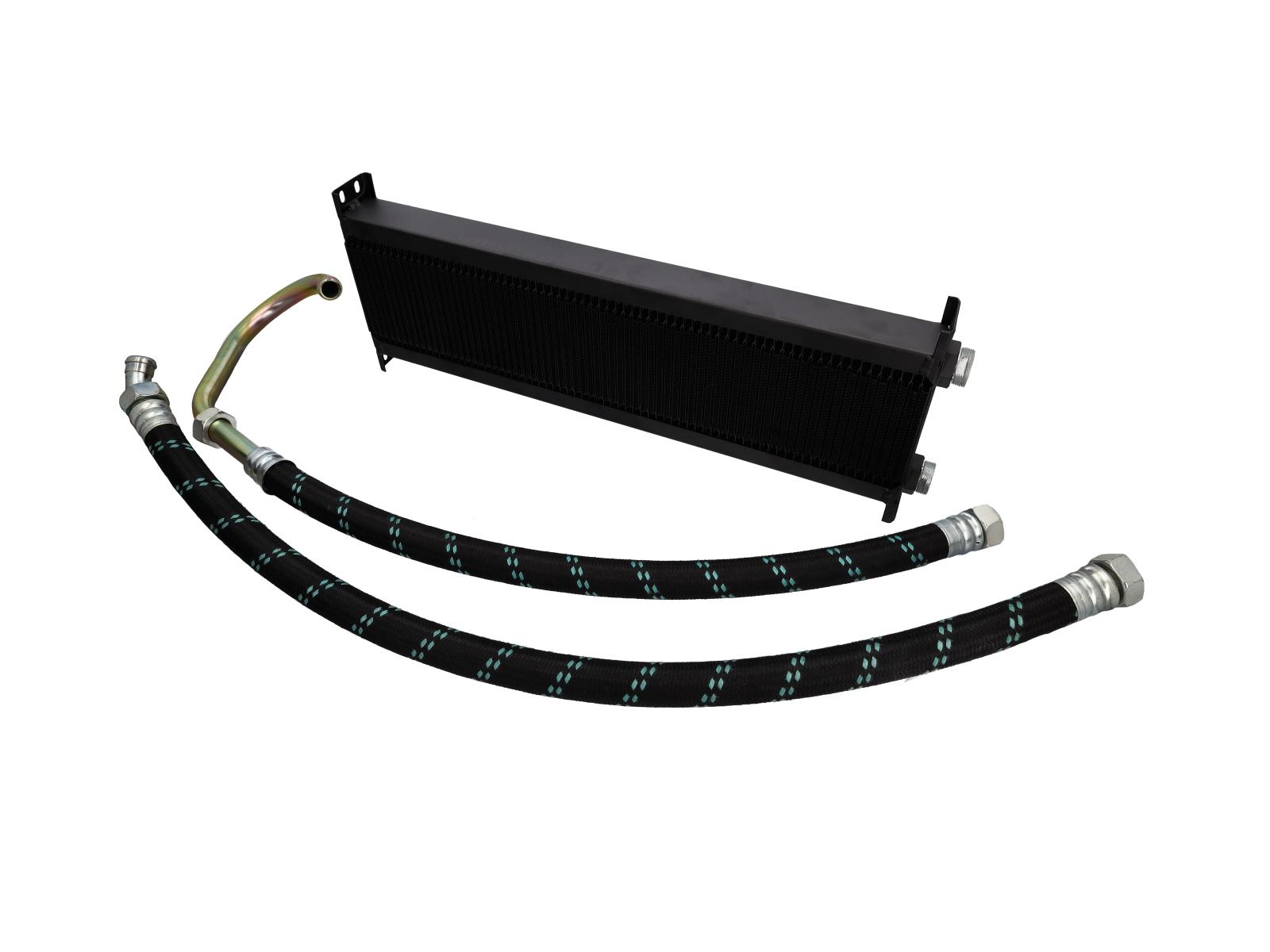 A complete plumbing kit. Enhances tire clearance by routing oil lines above the rear wheel. Universal crossover pipe fits all clutches and all heat exchangers, does not fit G50 transaxle. Includes finned oil lines for added heat dissipation.