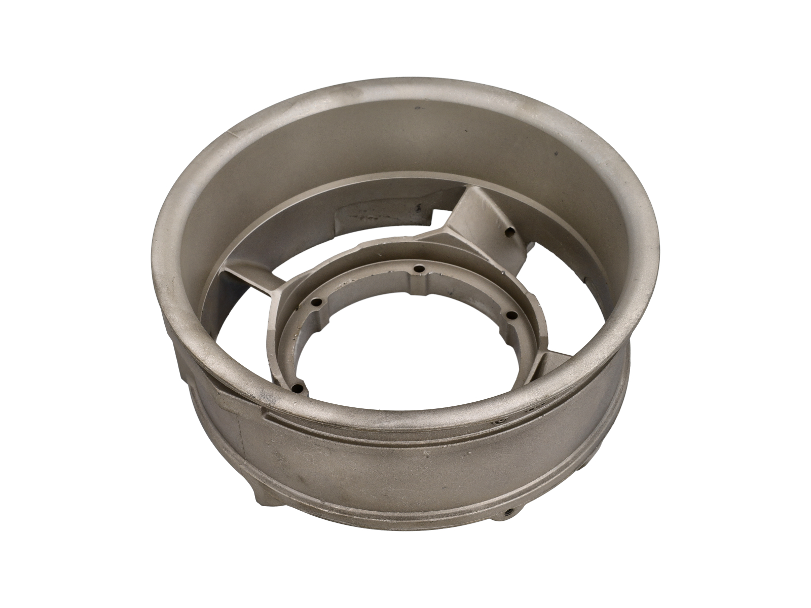 This aluminium moulded housing replaces the original shroud that encloses the alternator and cooling fan on Porsche 906 and 911 RSR racing engines. It is cast from aluminium moulding, with dimensions and mounting points aligned to the factory reference (225 mm diameter).