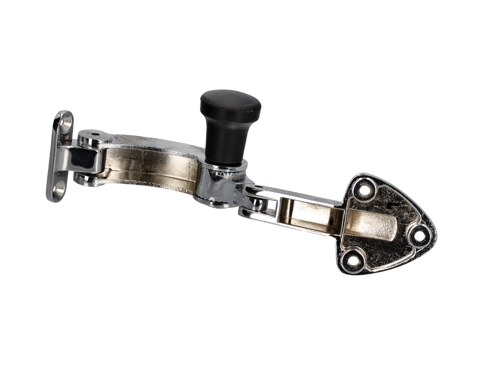 Provides the lever action to latch, unlatch, and hold the rear quarter glass in the open or closed position, maintaining correct sealing pressure when shut and controlled ventilation when open.