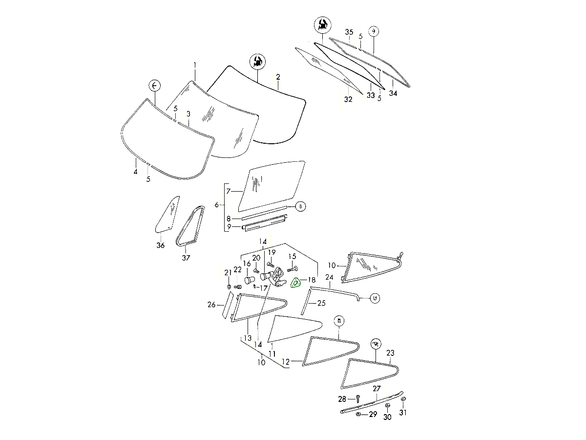 • Application: Rear quarter window assembly (pop-out/hinged type) – Porsche 911