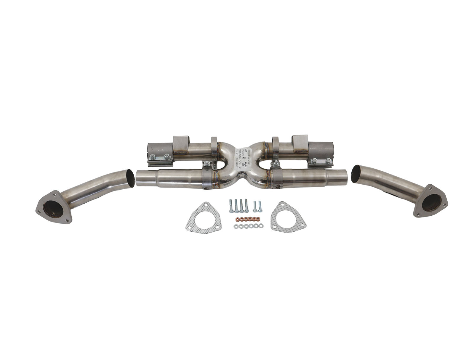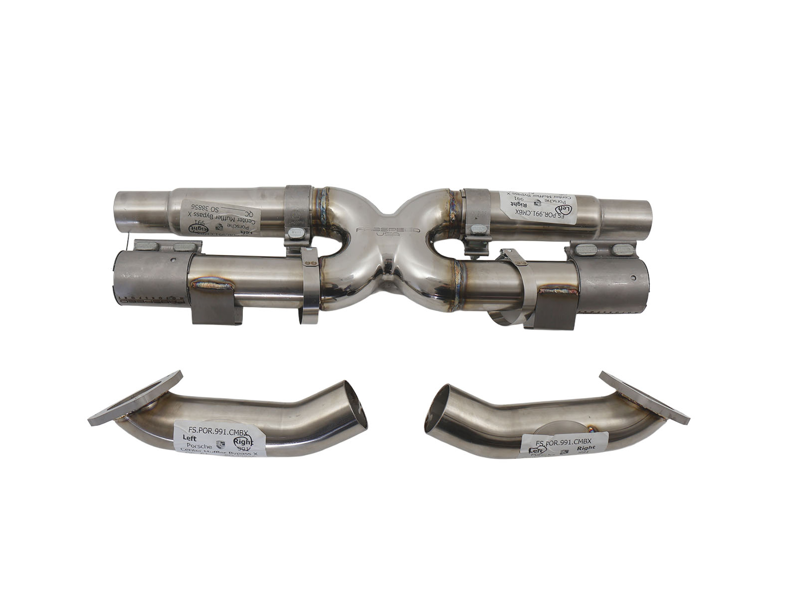 The 991 Carrera Center Muffler Bypass X-Pipe makes a great compliment to either the factory side mufflers or to Fabspeed's Maxflo Performance Side Exhaust System.