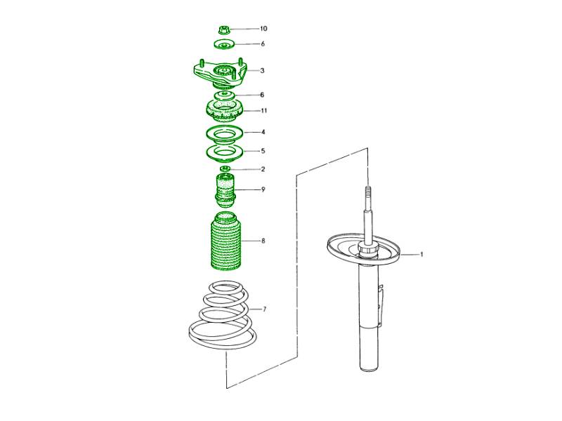 - Always replace the top mount and bearing when fitting new front shocks or coilovers.