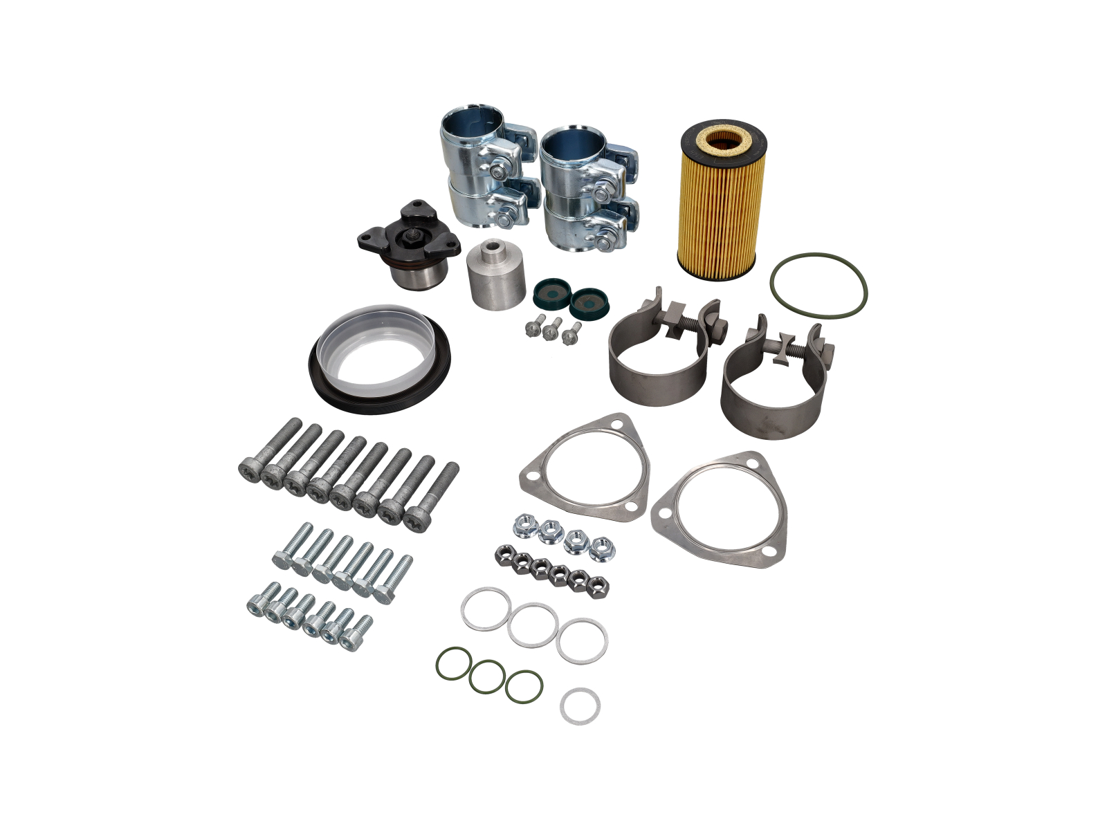 such as exhaust clamps, sleeves, installation hardware, seals and mounting