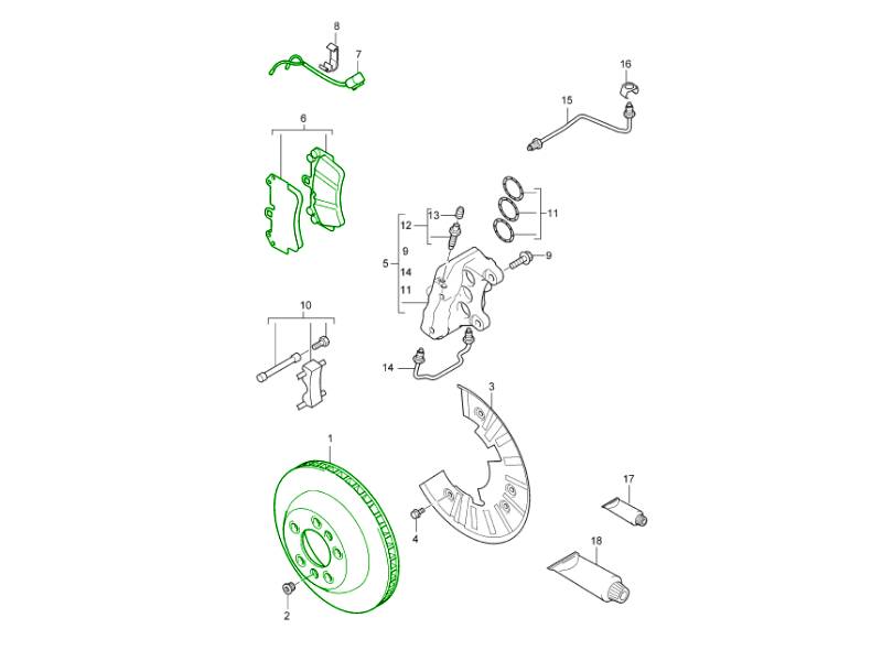 This Front Brake Pads and Brake Disc Package provides a full quality replacement solution for the front braking system on Porsche Cayenne 955 model. The kit includes front brake discs (rotors), brake pads, and pad wear sensors—everything required to restore braking performance and safety.