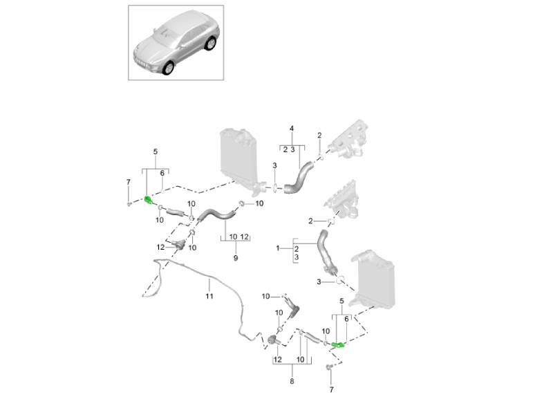 The Air Cooler Connection Piece is a genuine OEM Porsche component designed to connect sections of the charge air cooling system, typically between the intercooler and associated pipework. It plays a crucial role in ensuring a secure, airtight pathway for compressed air as it moves through the intake system.