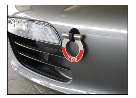 Rennline's stainless steel folding race hooks install in minutes on any Porsche with factory screw type removable tow hooks. Unlike the aluminum units on the market that are usually advertised as "for decorative purposes only", Rennline's stainless steel tow hooks are precision machined and will stand up to the extreme abuse seen in any race environment. These pulls have a 2" opening as required by most organized race events and screw directly into the factory bumper pull location. Each hook comes with a rubber bumper to be applied on the back side to insure your bumper cover will never get scratched from hook contact. Also included is one red tow sticker. Keep the corner workers and track officials happy by installing a set of hooks that are both highly visible and highly functional. Why is ours the best: