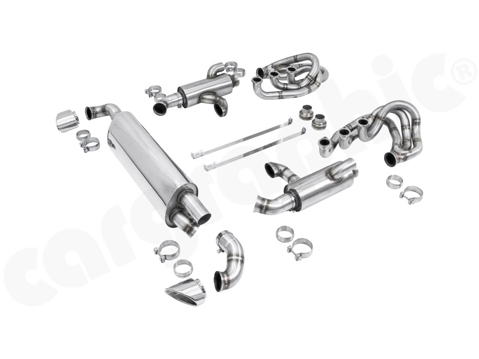 CARGRAPHIC GT Sport Exhaust System with ID42 GT manifolds, with / without 200cpsi catalytic converters, with heating and dual flow AQ rear silencer with LH and RH tailpipe exit.