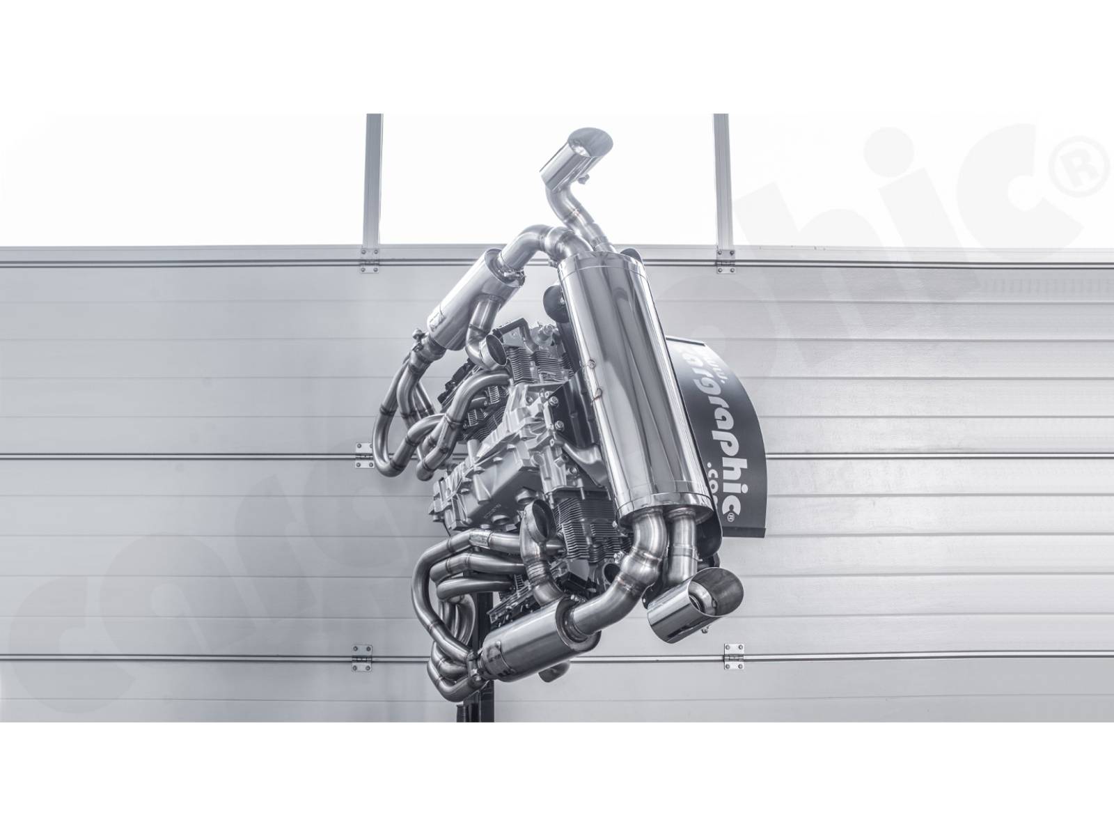 CARGRAPHIC GT Sport Exhaust System with ID45 GT manifolds, with / without 200cpsi catalytic converters, with heating and dual flow AQ rear silencer with LH and RH tailpipe exit.