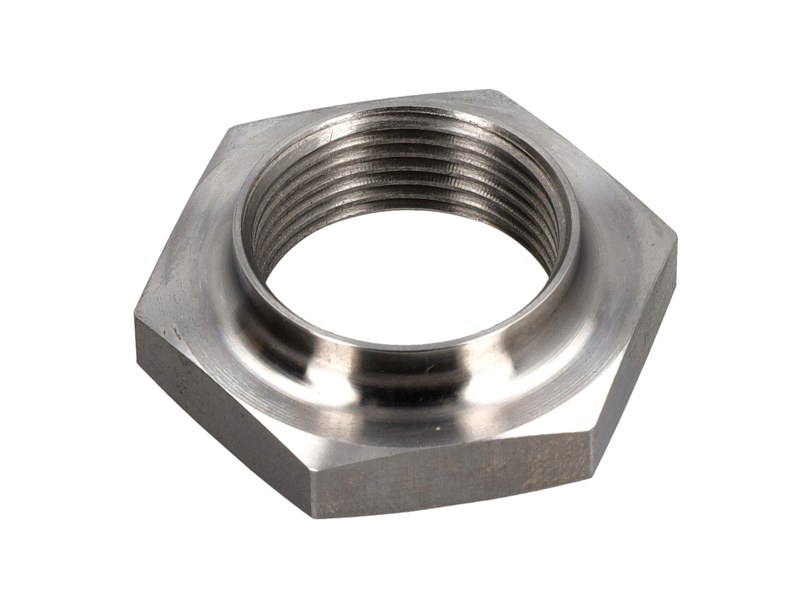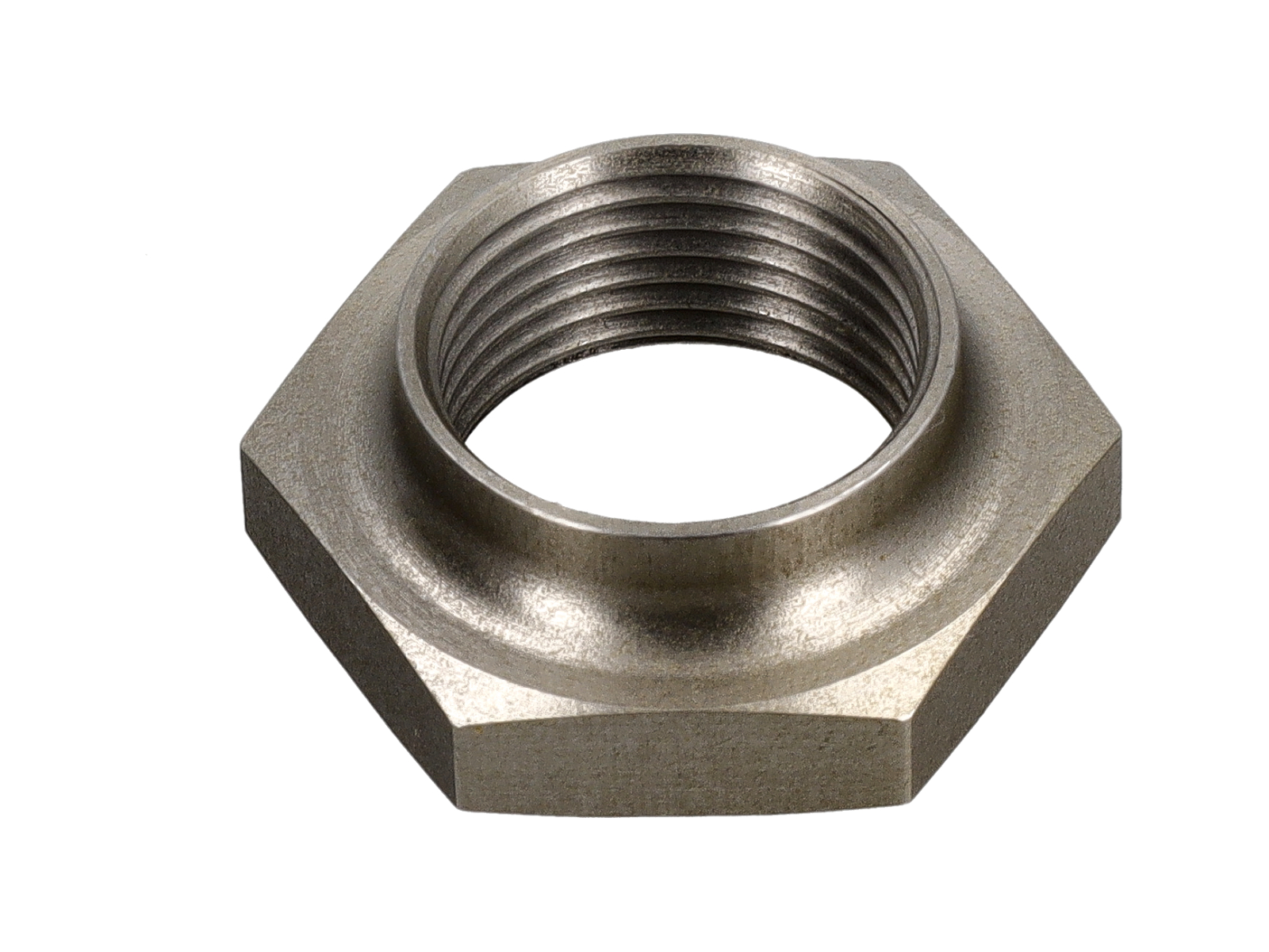功能:该锁紧螺母安装在变速器总成内小齿轮轴的螺纹端,用于固定小齿轮轴环。其设计确保小齿轮相对于轴承和啮合齿轮组的轴向定位稳定,从而在各种负载条件下都能保证平稳旋转和精确啮合。