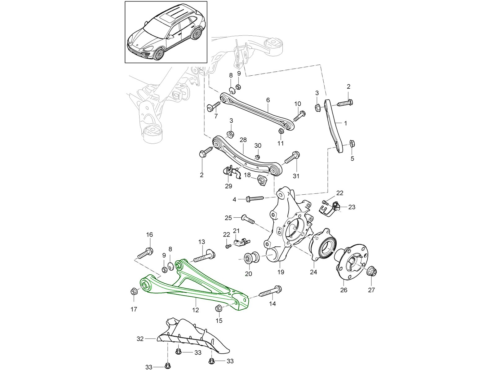 使用正品保时捷原厂配件更换磨损的悬臂,可确保 Cayenne 平台所需的正确悬架几何结构、耐用性和驾驶动态性能。