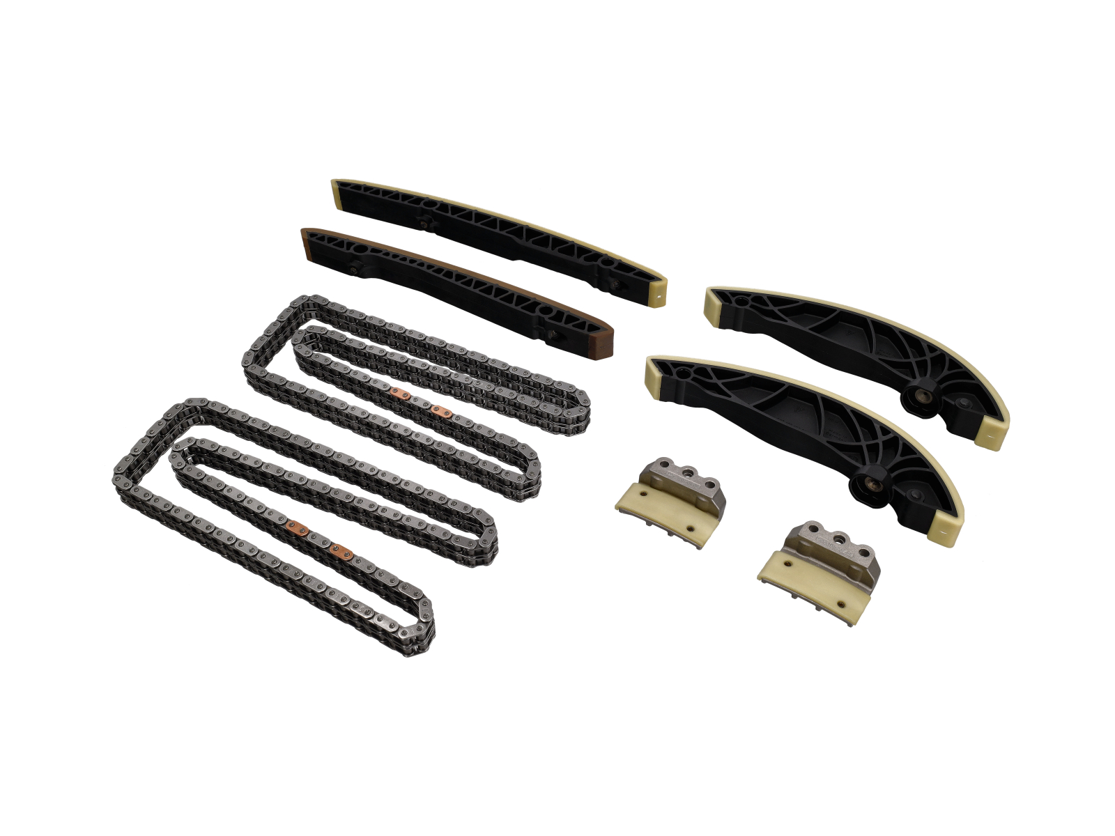 - 该套件更换了所有关键部件,使正时系统恢复到出厂规格:全新的链条、导轨、滑轨和相关驱动机构部件。