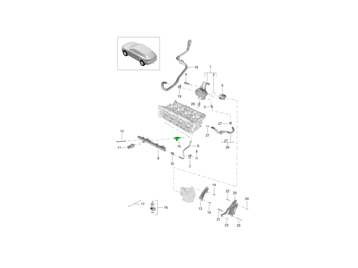 The Macan 2.0 uses a direct injection system, where fuel is injected at high pressure directly into the combustion chamber. Accurate injector performance is essential for smooth running, power output and emissions control.
