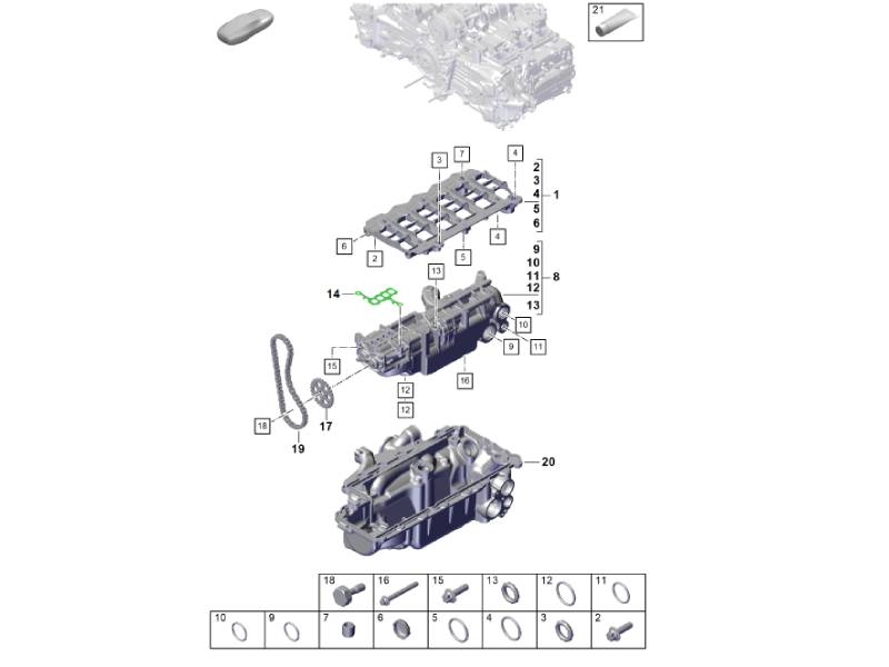 The oil sump seal ring is a critical sealing component within the engine lubrication system, designed to provide a tight, leak-proof seal between the oil sump (oil pan) and adjoining engine components or fittings. This seal ring helps maintain the integrity of the oil system by preventing oil from escaping at key connection points.
