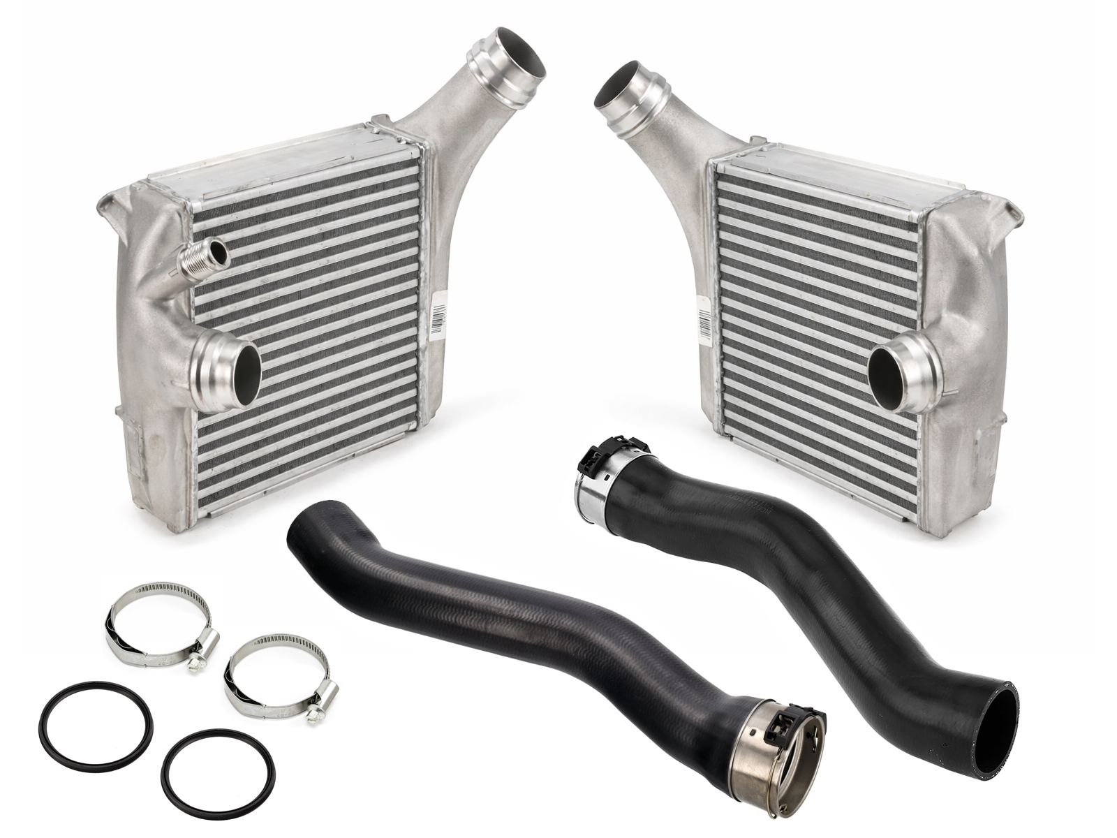 This OE Match intercooler and pipes set is a complete twin-intercooler cooling solution designed to replicate the original Porsche charge-air cooling components for the 970 Panamera 4.8 L Turbo. The kit includes both left and right intercooler cores and matching pressure pipes, providing an integrated, direct-fit replacement package engineered for proper boost airflow and turbo efficiency.