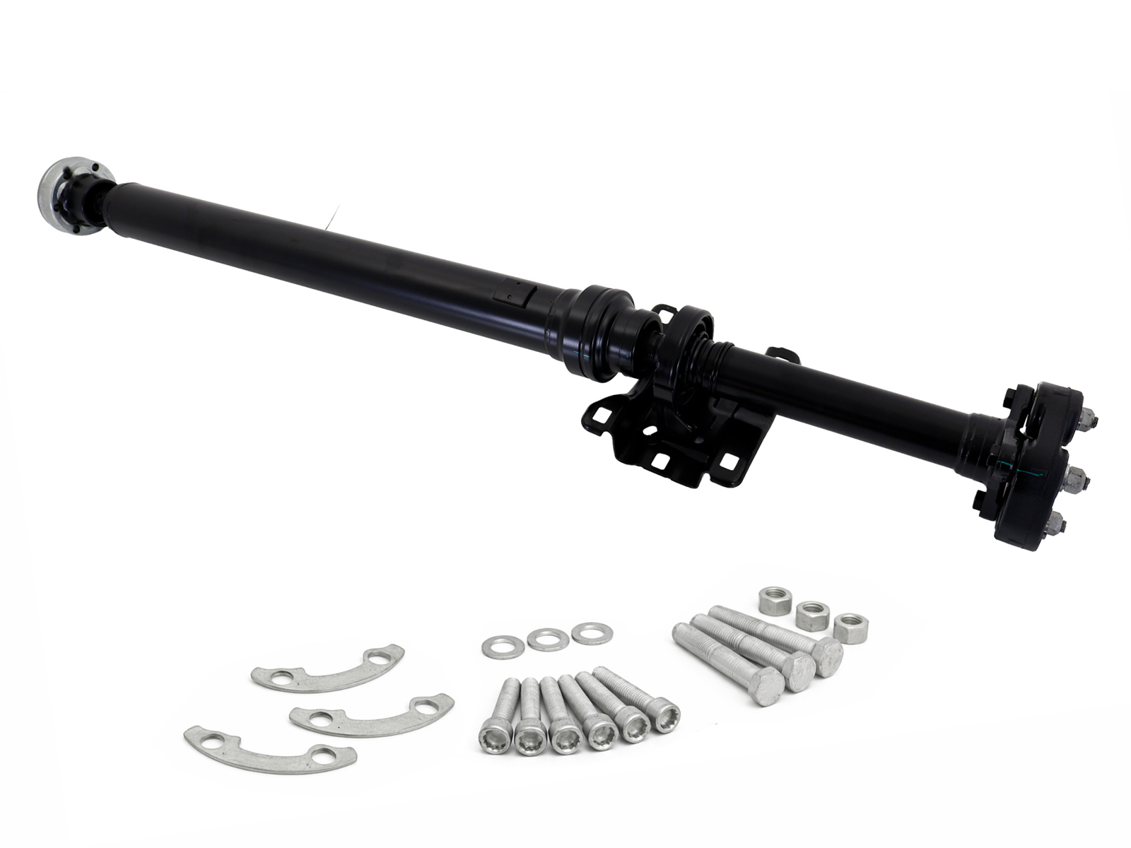 This OE Match Front Cardan Shaft Assembly Kit is a complete drivetrain solution for Porsche Cayenne 955 and 957 models. It includes an OE Match front cardan shaft along with genuine Porsche bolts and bolt plates required for secure installation.
