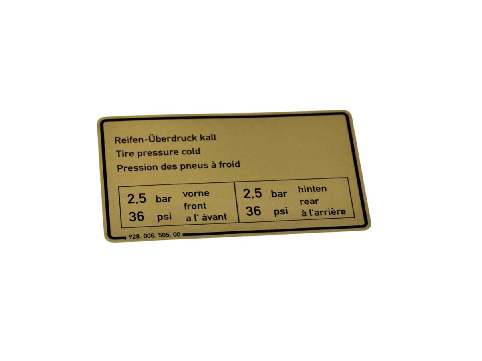 High-quality reproduction sticker for the coolant expansion tank, designed to match the original factory decal used on Porsche 928 models.