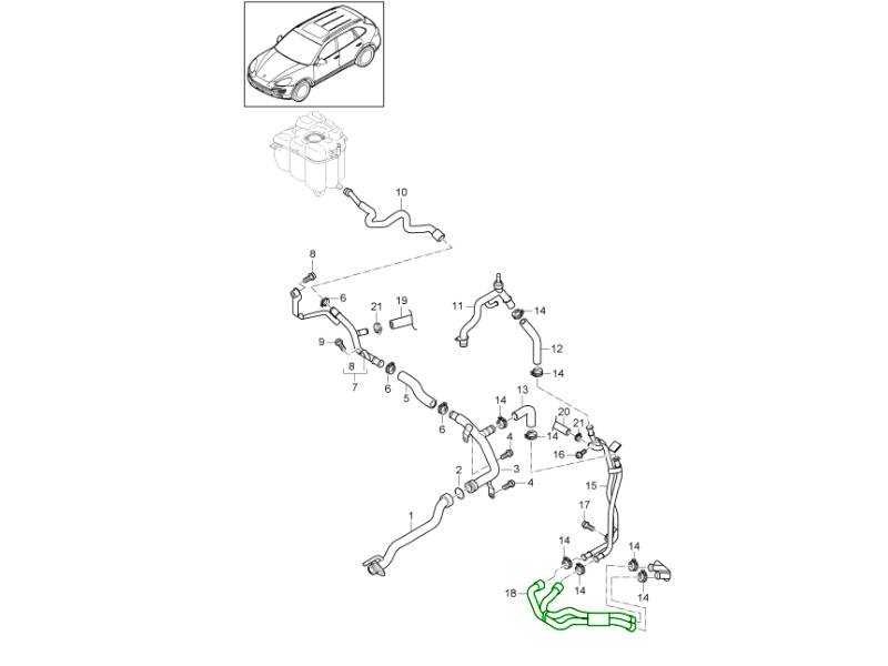 This flexible coolant return hose is a genuine Porsche part designed for precision fitment, long-lasting durability, and reliable service in the engine cooling circuit of hybrid-equipped Cayenne models. This radiator coolant return hose is specified for use on the Porsche 958 Cayenne Hybrid, especially models equipped with the 3.0 L V6 hybrid powertrain produced approximately 2015 to 2018, where it forms part of the main radiator coolant system.