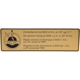 This sticker is a replica of the original Porsche factory label used to indicate the engine oil level in some Porsche 911 models.