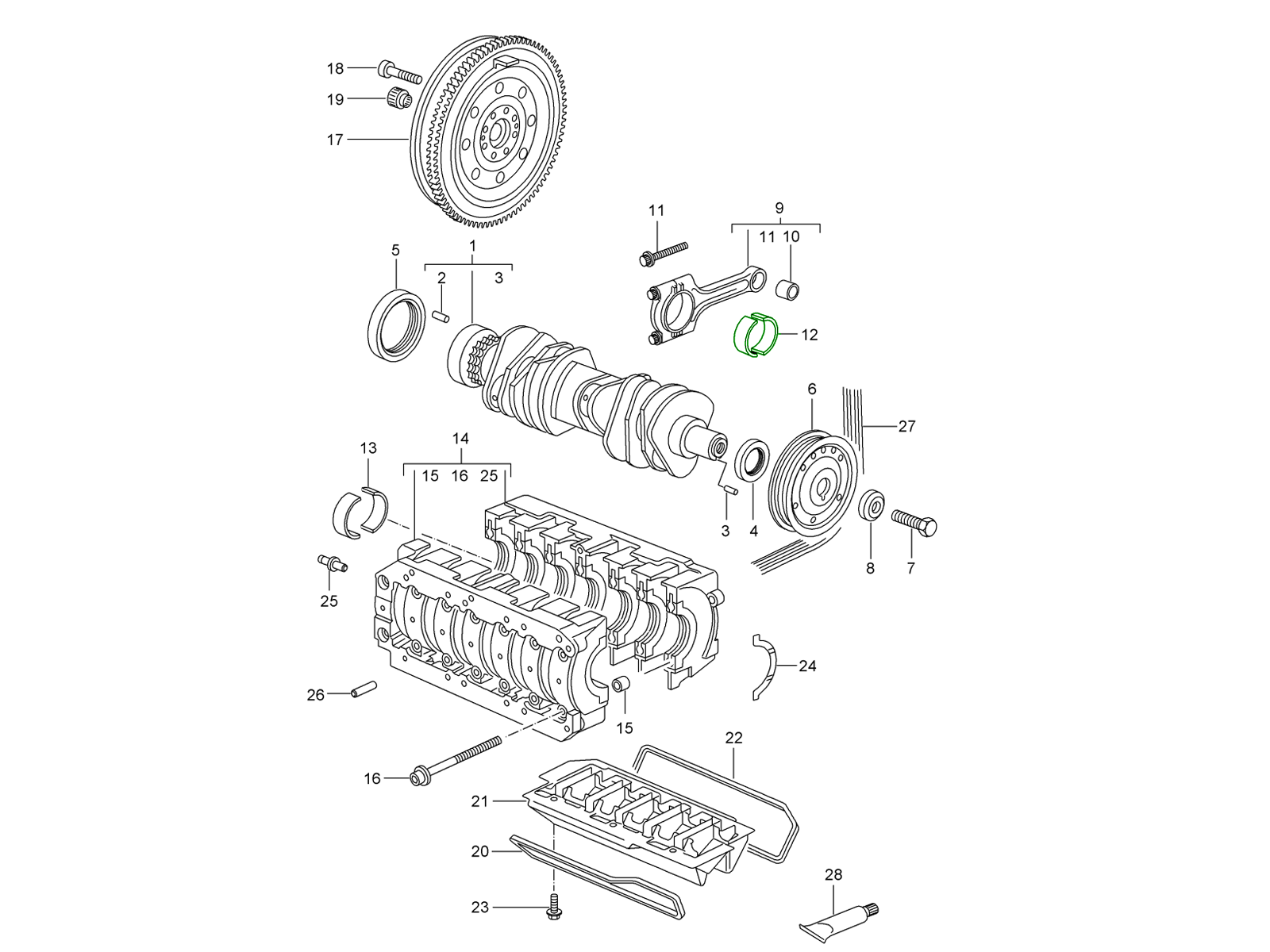 OE Match set of 12 big end bearing shells in standard size engineered to replace the original connecting rod bearings used on Porsche Boxster 986 / 987 and 911 996 / 997 and 987 Cayman platforms