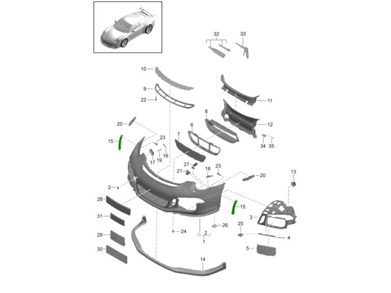Der schwarze Frontstoßstangen-Seitenspoiler ist ein originales Porsche-Aerodynamik-Zierteil, das für die linke und rechte Seite der Frontstoßstange kompatibler Modelle, insbesondere des Porsche 911 (Baureihe 991), entwickelt wurde. Diese Seitenspoiler werden an den unteren äußeren Ecken der Frontstoßstange montiert und sorgen für ein werkseitig korrektes Finish, während sie gleichzeitig die Luftströmung um die Fahrzeugfront optimieren.