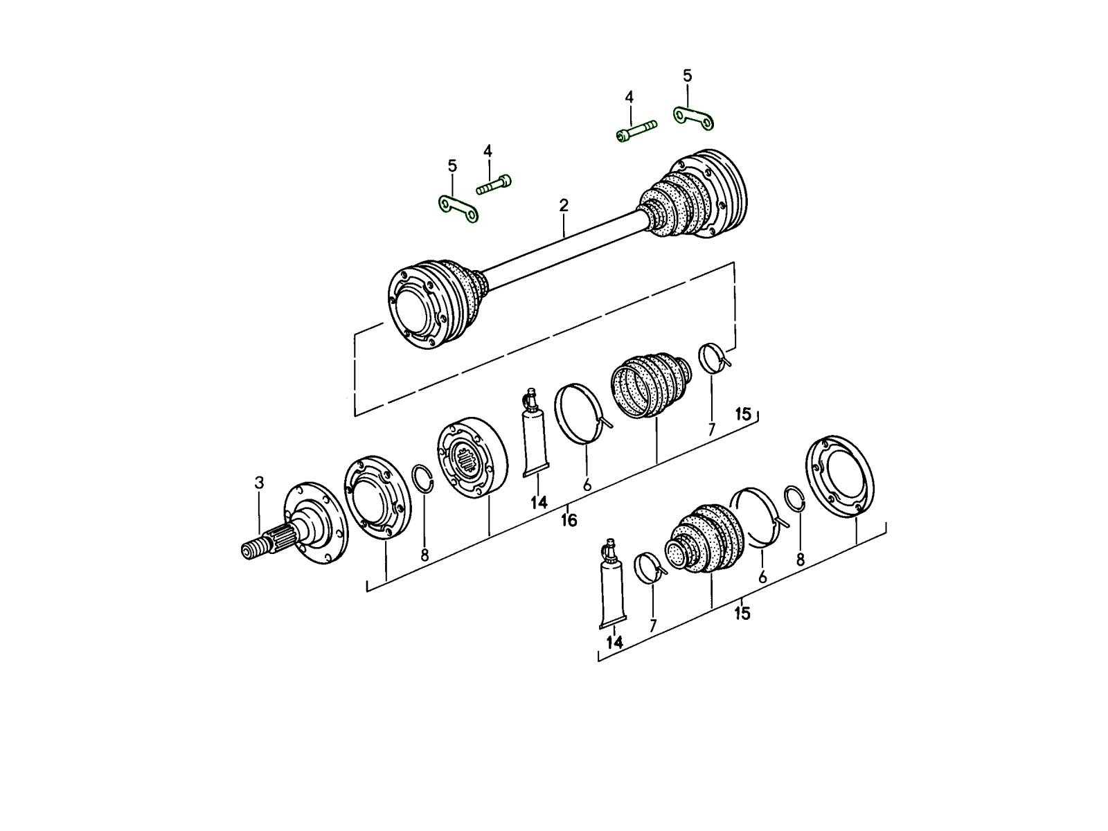Dies ist ein OE-kompatibler Ersatzteilsatz, der die richtigen Befestigungselemente und Halteplatten für die Wartung von Antriebswellen und Achsen klassischer Porsche-Modelle enthält.
