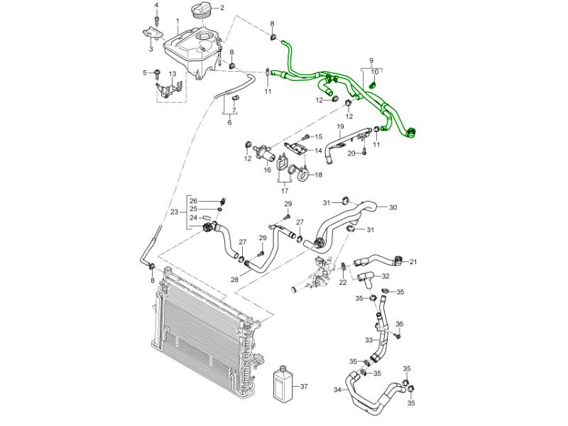 - Kühlmittelübertragung zwischen Motor- und Kühlersystemkomponenten