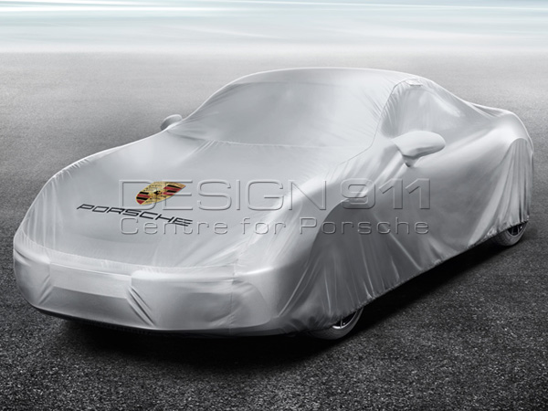 Passgenaue Outdoor-Fahrzeugabdeckung aus wasserabweisendem Material. Mit farbigem Porsche Wappen und „PORSCHE“ Schriftzug. Inkl. Diebstahlschutz